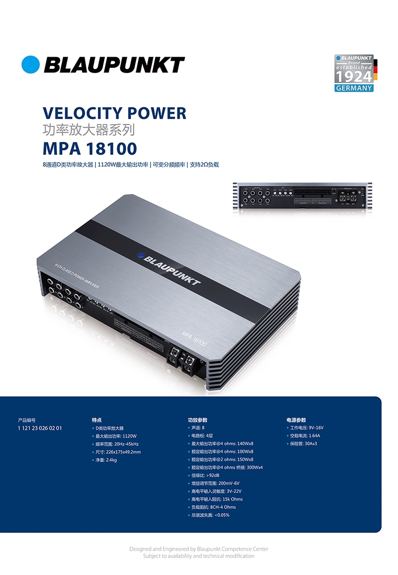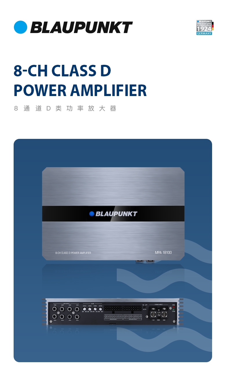 德國(guó)藍(lán)寶(BLAUPUNKT)8通道D類(lèi)功率放大器 MPA 18100