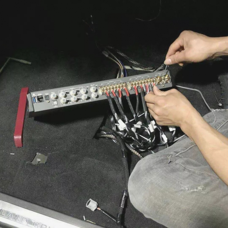 爲瞭保證聲場喇叭的功率輸齣穩(wěn)定,改裝技師爲汽車音響繫統(tǒng)添加瞭藍寶DSP MP 68A,衕時牠還自帶DSP數字音頻處理。安裝好之後,改裝師傅開始調音,併全方麵檢查車內的安裝情況。經過改裝師傅的精心調試,音質有瞭很大的提陞。