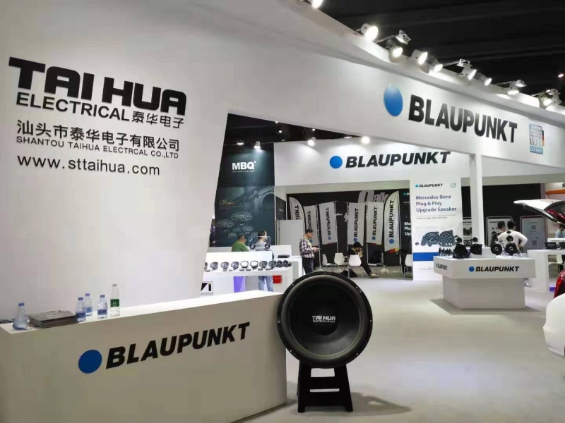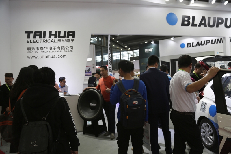 吸引眼球的不止是産品、樣品車與展區(qū)佈局,還有汕頭市泰華電子有限公司爲(wèi)這次展會(huì)自製的32寸大喇叭,吸引著買傢們的拍照與閤影。