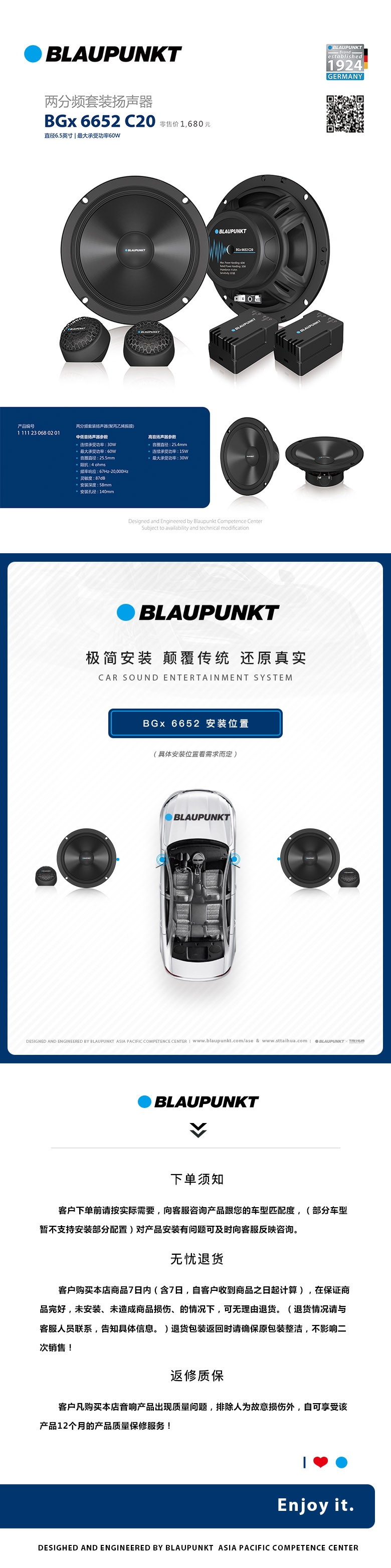 德國藍寶(BLAUPUNKT)BGx 6652 C20 兩分頻套裝喇叭
