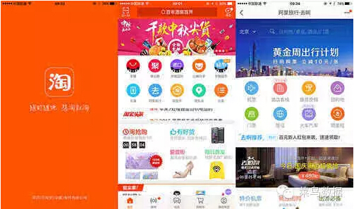 以“手機(jī)淘寶”App為例,打開淘寶App,選擇阿里旅行: